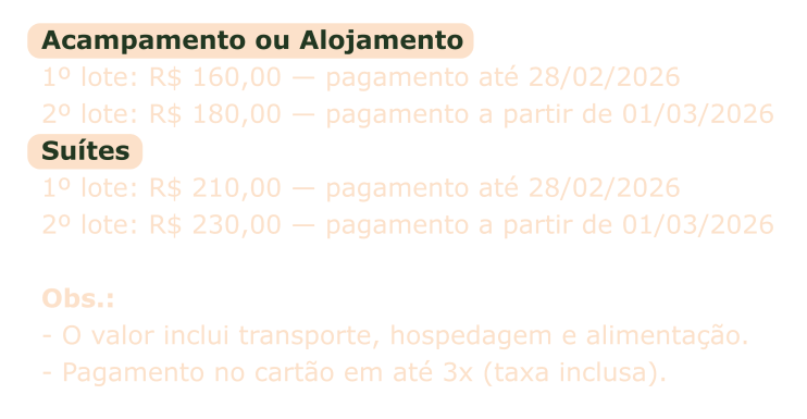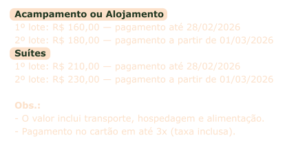 1º Lote: R$ 160,00 (Até 28/02)